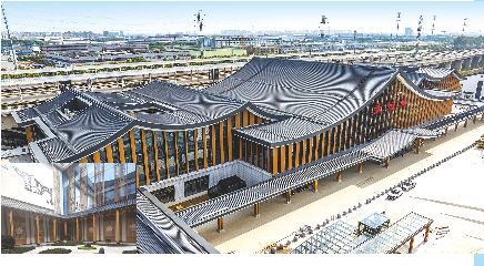 武进站站房建筑面积11999平方米,站场规模2台6线。武进境内的春秋淹城遗址“三城三河”建筑形制举世无双。武进站建筑造型以“江南园林”为原型,外形似起伏的屋顶轮廓,体现苏式建筑飞扬连绵、轻盈活泼的建筑特征。站内以“山水连绵、园意新城”为设计理念,打造景观连廊,形成“屋下有园,园外有廊”的美妙景象。
