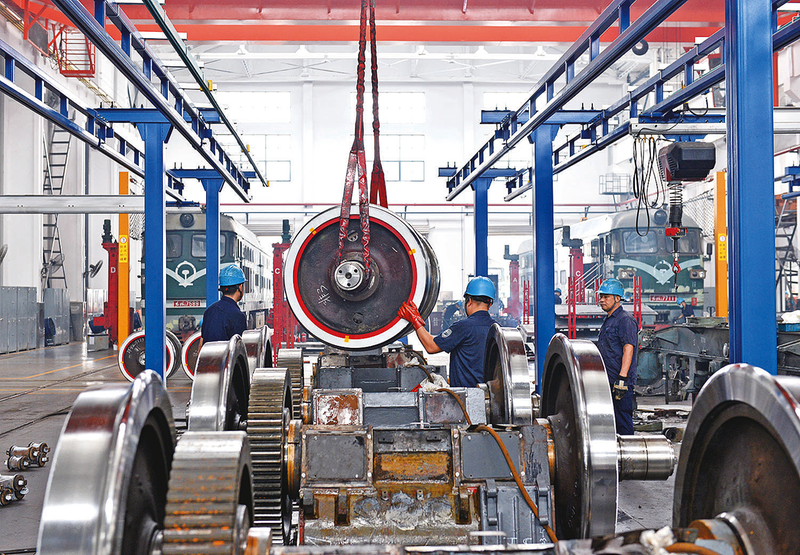 合肥机务段结合机车秋鉴工作,扎实开展机车质量专项排查整治,切实消除风险隐患和惯性故障,确保运输安全稳定。图为该段合肥检修车间职工在组装机车轮对。