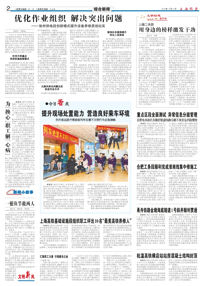 上海高铁基础设施段组织职工评出10名“最美高铁养修人”