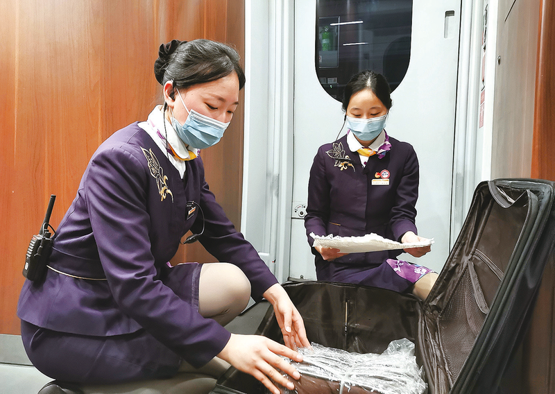 以前,动车组商务座备品箱内备品配备摆放比较粗放,而不同车型又需要配备不同数量备品。杭州客运段在今年的标准化规范化建设中,针对动车组商务座备品箱内装箱杂乱、翻找效率低的情况,对备品箱进行分类,做到专箱专用,制定了“标准箱”“3A”“3B”“1号”“2号”等5类带有标牌的备品箱,根据动车组车型不同,箱子内配备不同数量的备品,实现清单式管理。为防止备品挤压损坏,该段还统一为托盘定制外盒、热水壶增加布艺套,要求备品箱内的物品按照大不压小、重不压轻原则进行摆放,既保护备品,又让乘务员取拿有序。