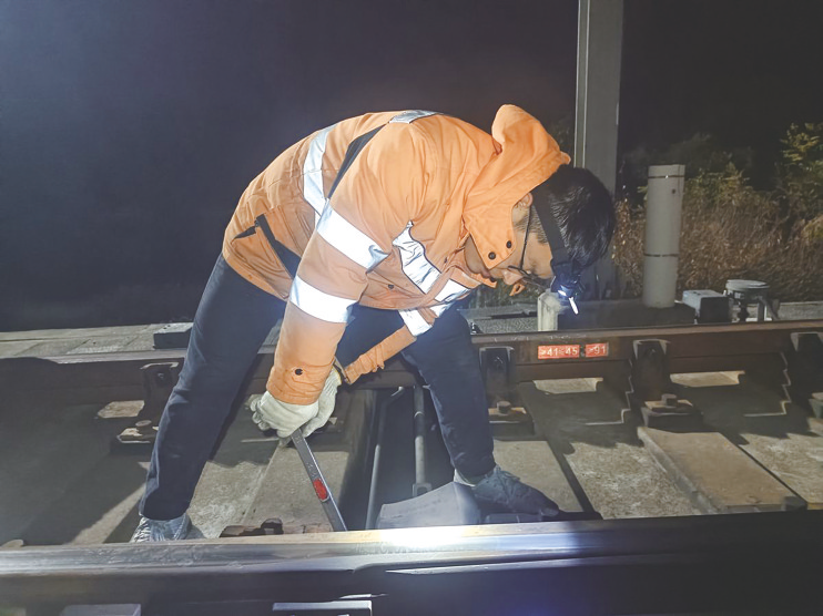 说罢,方明贵拿起扳手,专注地对道岔进行“手术”。李俊卿则单膝跪地,紧紧盯着缺口调试的情况。仅用20分钟,两人就将缺口调整到了最佳预留位置。清点好工具,回检完现场,又马不停蹄奔向杭州方向进行剩余的4组道岔检修。