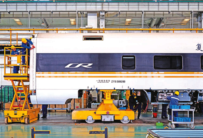 上海动车段优化生产组织,错峰开展动车组高级修,最大限度满足春运期间运力需求。图为该段高修场作业人员对动车组车顶高压设备、车下车载电源箱、车端内外风挡等进行检修。