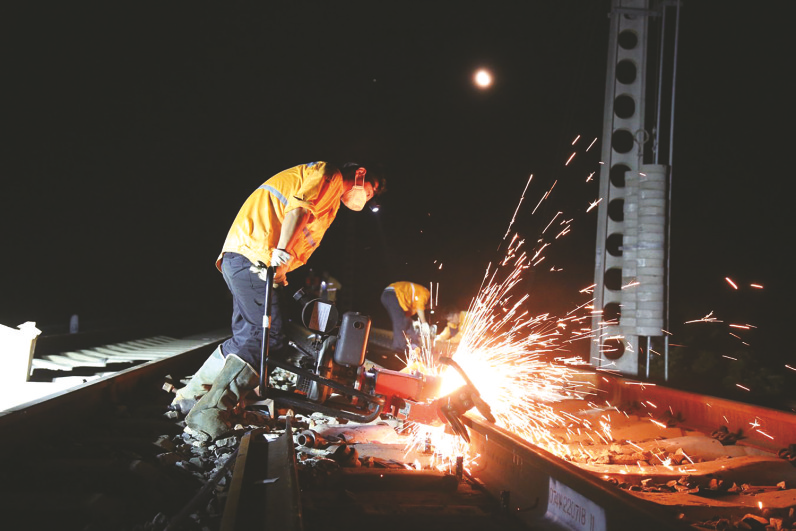 锯轨机切割着伤轨