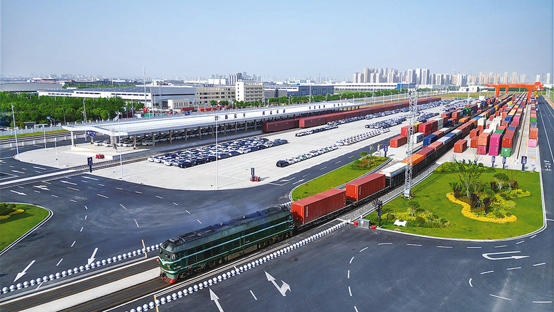 合肥物流中心深度挖潜新开通派河港铁路物流基地运能,大力发展多式联运业务,为企业客户量身定制高效便捷的铁海联运物流解决方案,运量实现大幅度增长。1至4月份,合肥物流中心铁海联运发送25384车,同比增长72.18%。图为调车机牵引班列从派河港铁路物流基地驶出。