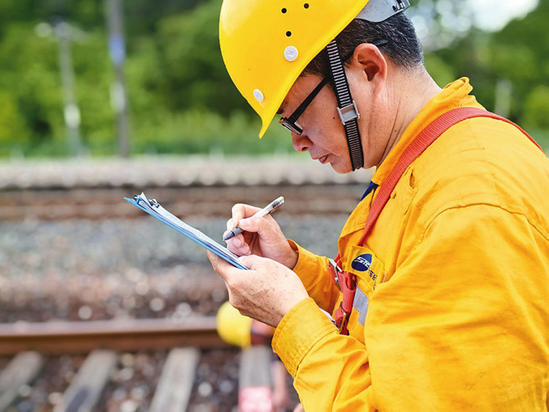 今年53岁的陈益湘,是南京房建公寓段黄山普铁工区的巡检工。多年房建岗位的工作历练,让他练就了一身过硬的“望、问、摸、敲、剖、用、测”的专业本领,是工区公认的“技术标杆”“设备活地图”,荣获段2023年度“先进生产者”称号。