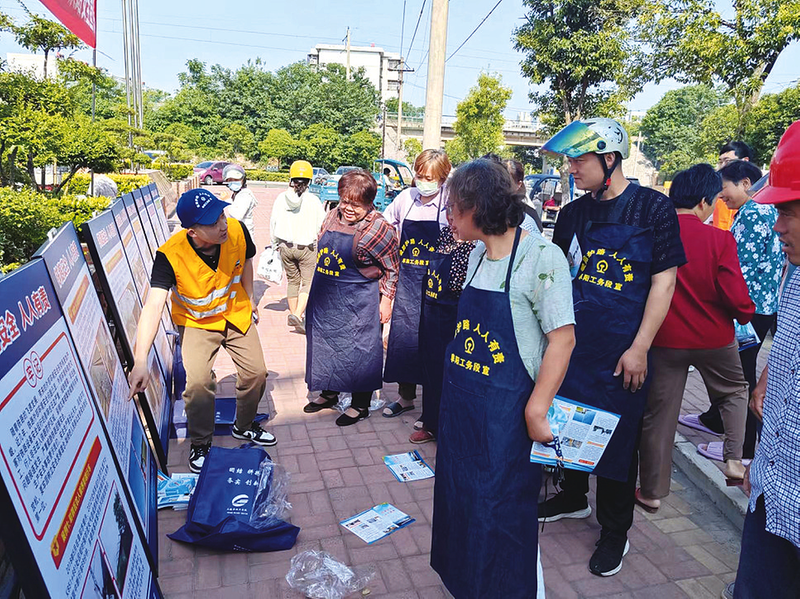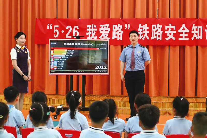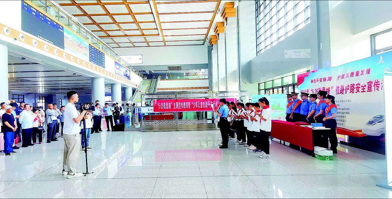 图⑥:淮北车务段职工会同学生在宿州站开展铁路安全知识宣传。 (通讯员 陈令杰 摄)