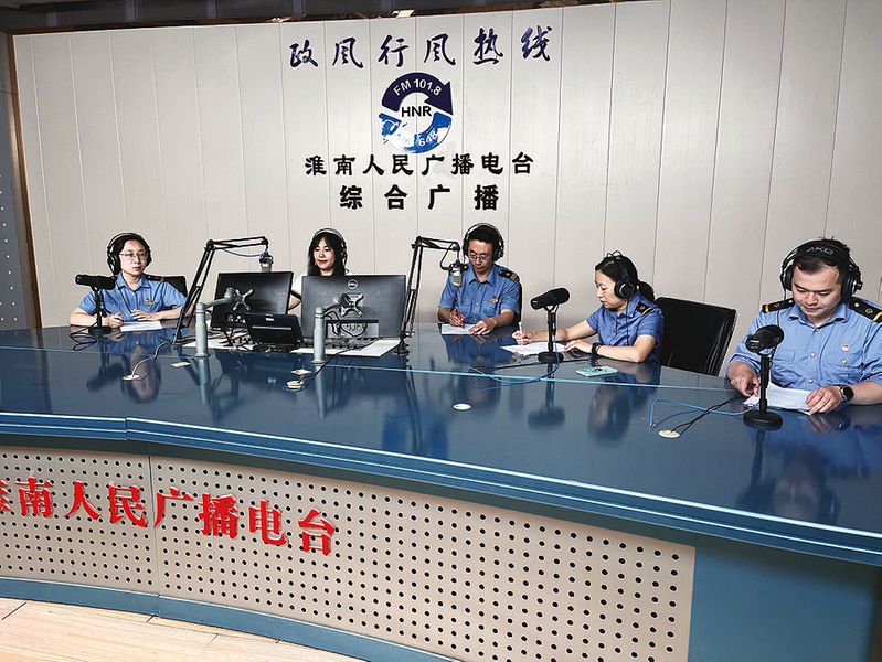 图③:淮南西站职工做客淮南人民广播电台政风行风热线,宣传铁路安全知识。 (通讯员 刘玮 摄)