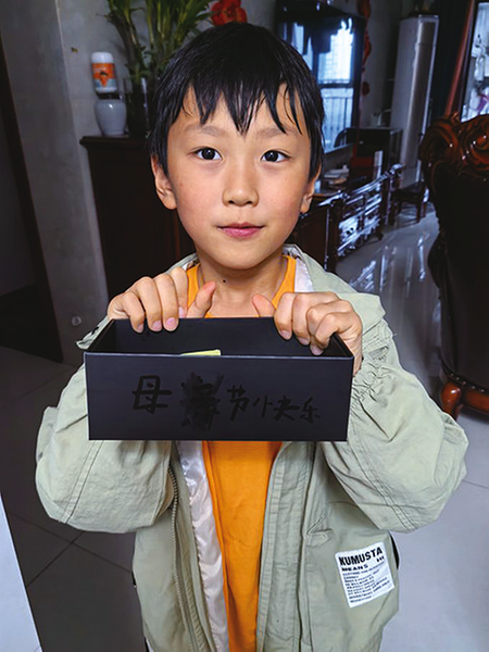 今年母亲节前一天,我休息在家。午饭后,7岁的大儿子神神秘秘地关了房门,并告知我不可踏入他的那方天地。好奇在我心间转念,但还是任他营造那份神秘,只当他是午休时间想偷摸着吃点零食或玩会儿玩具。