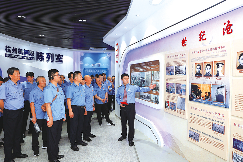 党员在参观杭州机辆段陈列室。(通讯员 肖昆 摄) 记者 胡小东