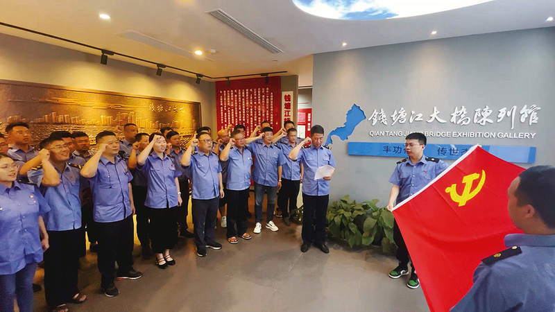 钱塘江大桥桥梁车间党支部组织党员宣誓 (谭浩 摄)