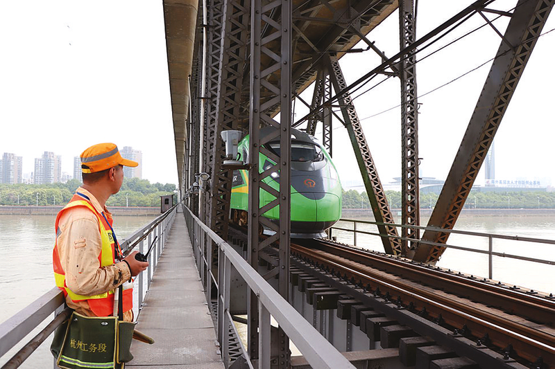 守护如此胜景,是传统,是责任,是使命。新一代杭工人传承和发扬前辈们的优良传统,不断创新养桥工艺和方法,细心呵护3100余根桥枕、18000余只桥面螺栓、2600余米护木,让钱塘江大桥始终保持设备良好的状态。
