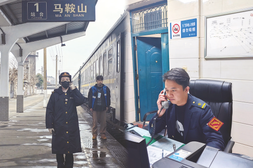 淮北车务段淮北站客运三班班组长李强龙和涡阳站安检员左凯莉夫妇全家福、工作照图