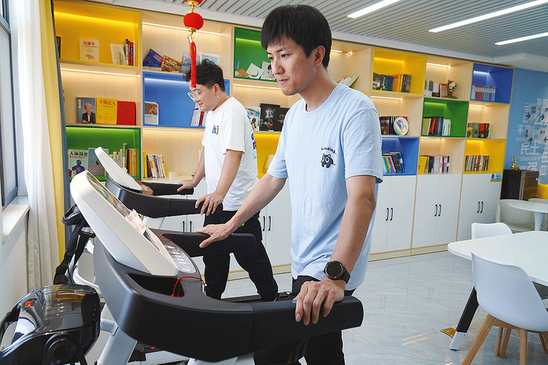 职工在合肥房建公寓段合肥综合楼单身宿舍文体室健身。