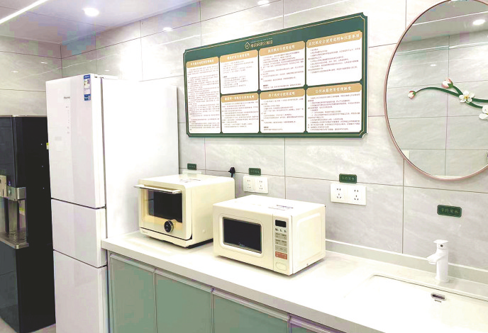 改造后的花家桥宿舍,建筑面积1500平方米,共有39个房间,可入住93人。它保留了原有的民国建筑风貌,同时巧妙融入现代设计元素,增添了独特的文化魅力。两层小楼中,一楼区域增设了多功能间,包括瑜伽舞蹈房、阅览室、休闲区和公共浴室,配备了把杆、瑜伽垫、智能健身镜、健身器材、大屏幕电视机和女性元素图书。女职工们在工作之余,可以在此健身锻炼、阅读学习、手工制作,丰富业余生活,增进彼此交流。二楼的8个房间保留原有布局结构,是宽敞的三人间和四人间,均配备了公共卫生间。