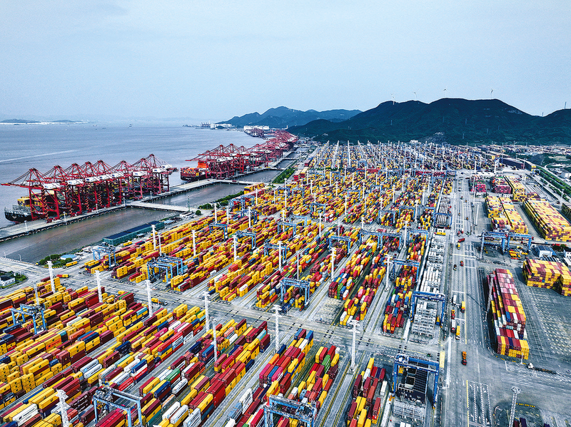 今年以来,集团公司坚决贯彻落实国家《扎实推进高水平对外开放更大力度吸引和利用外资行动方案》等有关要求,助力服务外向型经济发展,持续推动海铁联运增运上量。截至5月9日,集团公司今年已完成海铁联运(箱数)超100万标箱,较去年完成100万标箱提前9天。图为宁波舟山港穿山港区。