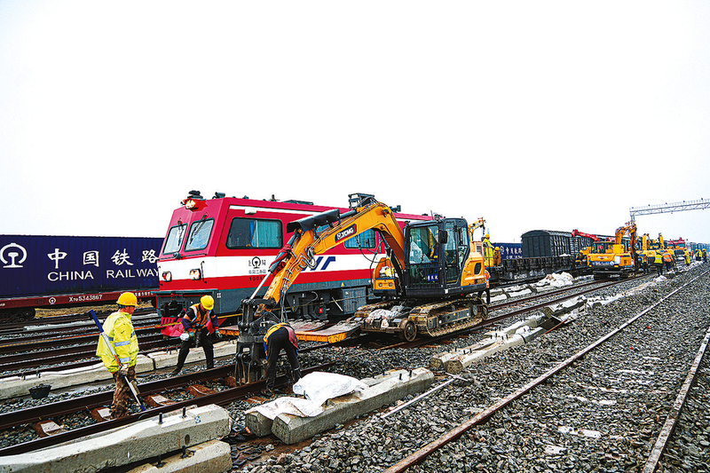 针对阜阳北站编组场六场既有线路设备老化、轨枕间距不均等问题,阜阳工务段根据列车解编运行情况,动态组织近百名职工,运用10余台挖掘机,利用21个施工封锁“天窗”点,完成轨枕加密26.4公里、换轨21.6公里施工任务,线路设备质量显著提升。