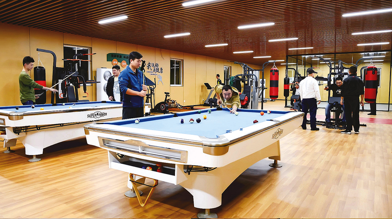 职工在活动中心打桌球。 本报讯(通讯员 陆嘉诚 文/摄)“好球!”“这球的角度很刁钻啊。”10月22日11时40分,上海何家湾基地职工活动中心迎来首日试运行,职工们在乒乓球活动区激烈对打。