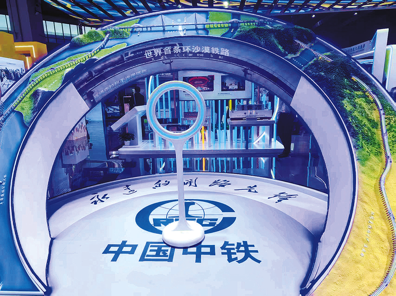 在中国馆,铁路高科技成果并不在少数。直径达4米的巨型综合数智沙盘前人流不息。沙盘上,世界最长跨海峡公铁两用大桥平潭海峡公铁大桥在复杂海洋环境中屹立的雄姿、世界首条环沙漠铁路“锁住”黄沙的生态智慧、拉林铁路穿越青藏高原险峻地貌……一处处“大国智造”工程微缩展示,与一旁的LED屏交互体验,令人震撼。同济大学学生张柳感慨道:“一处处天堑变成通途,一个个梦想照进现实,中国铁路我为你‘打call’!”