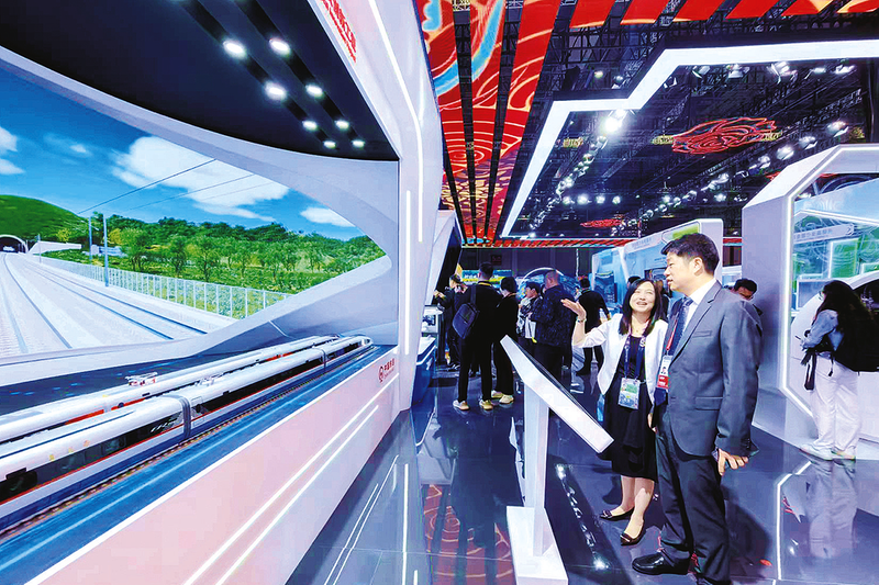 在国家综合展,以“中国新发展 世界新机遇”为主题的中国馆成为人气最高的展区之一,处处洋溢着科技的力量。CR450科技创新工程、铁路建设新技术……馆内“铁元素”引得中外观众纷纷驻足。