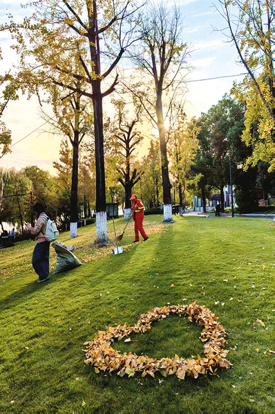 这位环卫阿姨也许没听过什么“生活美学”,也不一定懂什么叫“仪式感”,但她摆出的那颗“树叶爱心”,就像是在认真、平淡的日子里,把工作过成了属于自己的诗。这大概就是她独有的浪漫吧——在日常工作中,种出一个会发光、有心跳的“惊喜”。