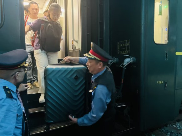 17时57分,K1626次列车准点到站,车厢门刚打开,带着大行李箱的学生旅客就挤在门口。刘海斌俯身帮学生提箱子,嘴里念叨着:“别慌,按顺序来,都能下车!”短短4分钟里,他和班组一起帮325名硬座车厢旅客搬运行李、引导出站,额角的汗珠顺着脸颊滑落。不少学生笑着道谢:“谢谢叔叔,您辛苦了!”