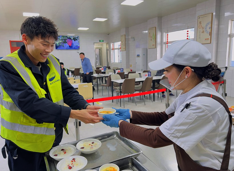 夜幕降临,徐州北公寓食堂内大家围坐用餐,欢声笑语不断。徐州北公寓车间的“暖冬服务”,藏在一餐一食的热乎劲儿里,融在一件一物的关怀中,让每一位乘务员都能感受到“家”的温暖。
