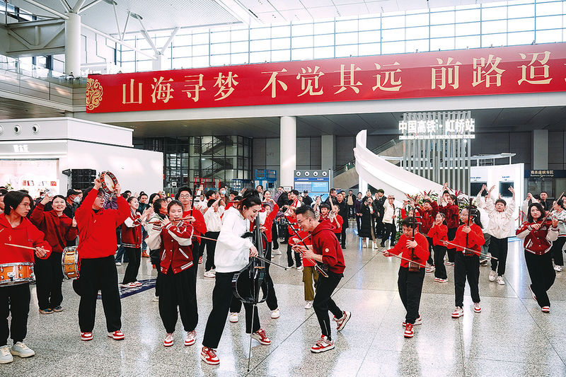 1月24日下午,热情奔放的音乐声在上海虹桥站候车大厅响起,中外艺术家与闵行区青少年活动中心的孩子们一起联袂献上一曲中西乐器合奏、兼具传统韵味与现代气息的《奔马迎春》,短短几分钟让现场旅客充满惊喜与放松。据悉,此次活动由上海站联合上海市对外文化交流协会举办。