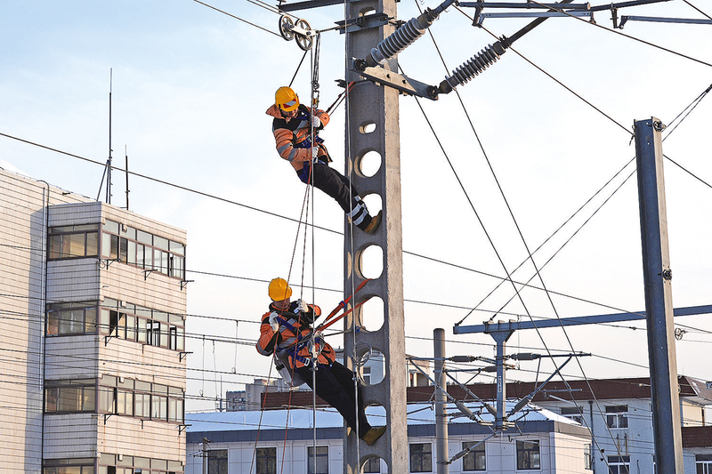 图③:徐州供电段开展接触网工技能练兵,为保障春运期间供电安全做好充足准备。 (通讯员 李勇烁 摄)