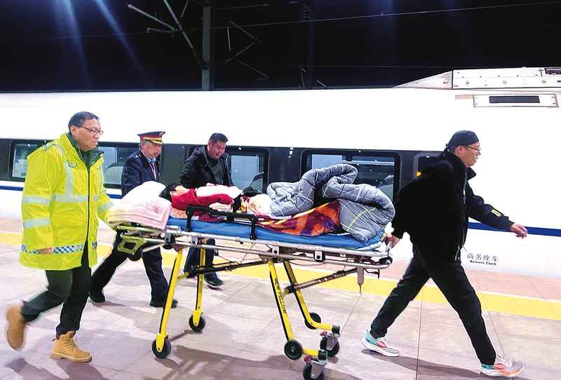 1月21日晚,“i浙里·和美金华”雷锋服务站接到G191次列车长的求助,一位旅客需担架协助转运。接到求助后,客运员郑安民和同事提前与急救人员对接,携带担架至G191次列车指定车厢外等候。列车进站后,工作人员与急救团队紧密配合,迅速平稳地将旅客护送下车并抬上担架,全程仅用时2分钟,未影响列车正点运行。旅客家属深受感动,称赞铁路服务高效又暖心。