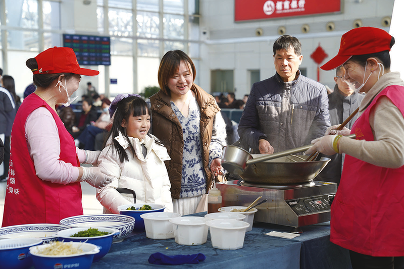 图③:镇江直属站在镇江站候车大厅组织非遗传承人为南来北往的旅客烧制地道的锅盖面。 (通讯员 朱旻荃 摄)