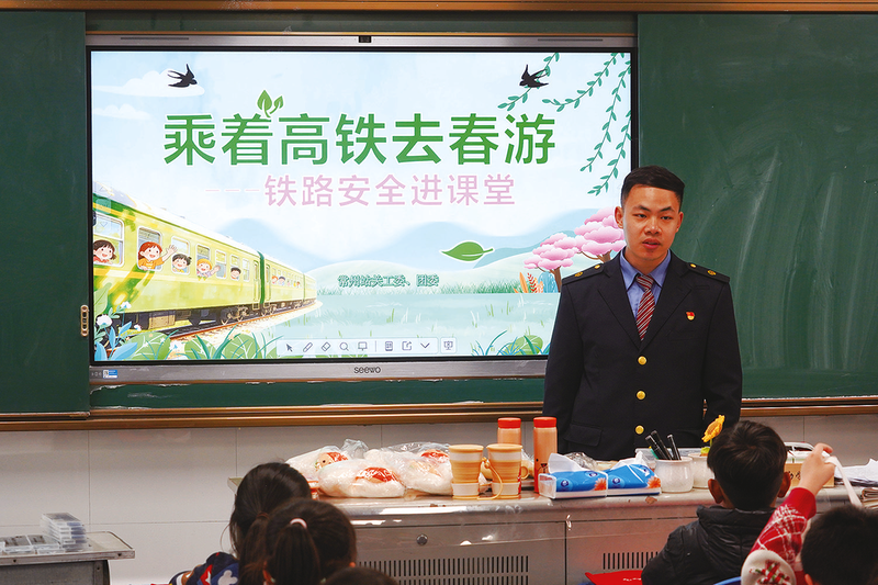 今年,江苏省首次推行中小学春假。常州站抓住这一市场契机,于近日组织青年职工走进常州市多所小学,开展“铁路安全进课堂”“春游推介进校园”活动,推介优质春游线路、普及铁路安全知识,受到师生们的热烈欢迎。活动中,青工们针对学生们的春游需求,推介亲子游高铁线路、踏青景点及出行小贴士,为孩子们春游出行提前做好功课。此外,青工们还用通俗易懂的语言和鲜活案例,向孩子们讲解铁路安全常识,引导大家树立爱路护路意识。