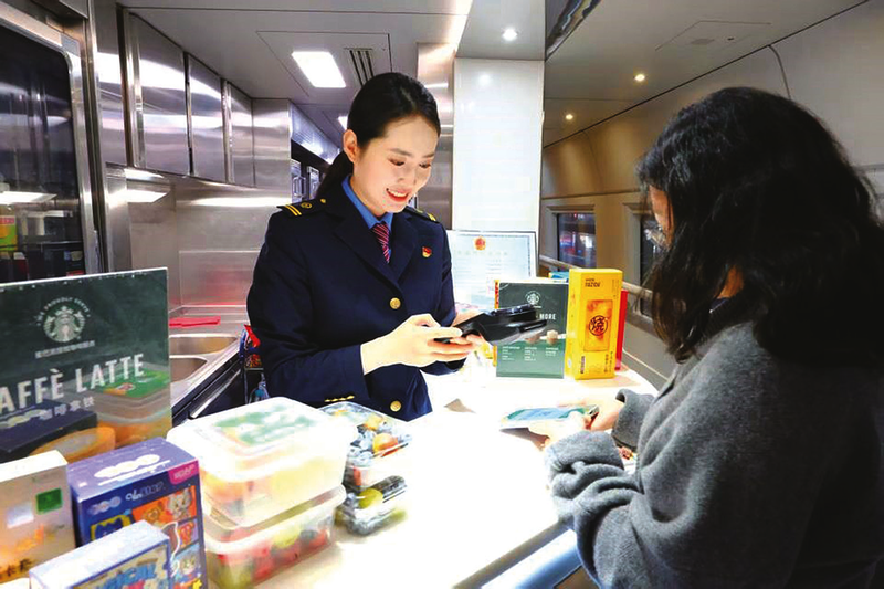 唐霄慧热情服务购买餐食的旅客 李艺雯 摄 唐霄慧口述 孙明昊整理